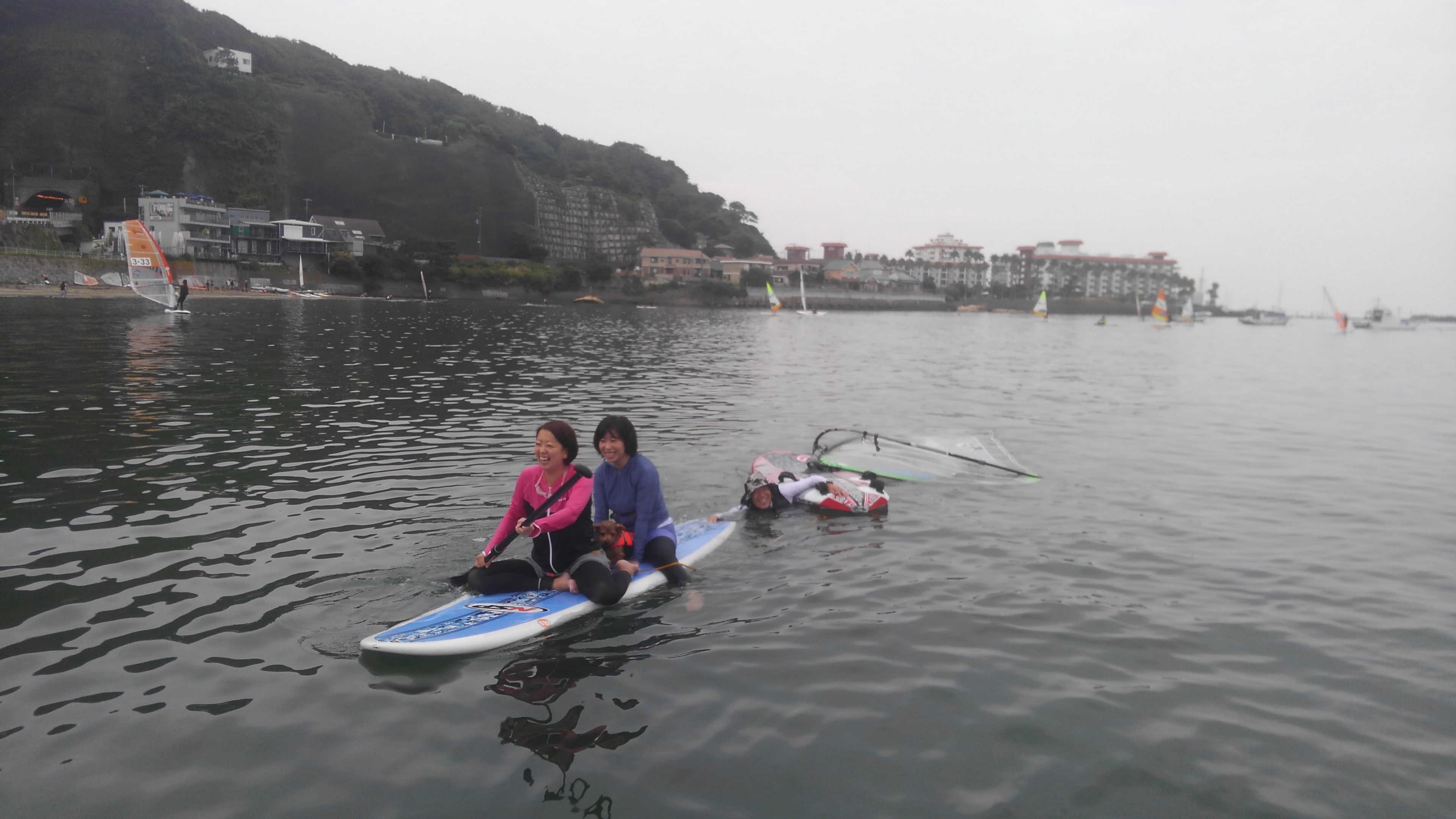 ウインドサーフィンの初心者にも弱い風でしたが、親子で参加のS村さんたちは、進んでターンして帰って来ることが出来るようになりました!