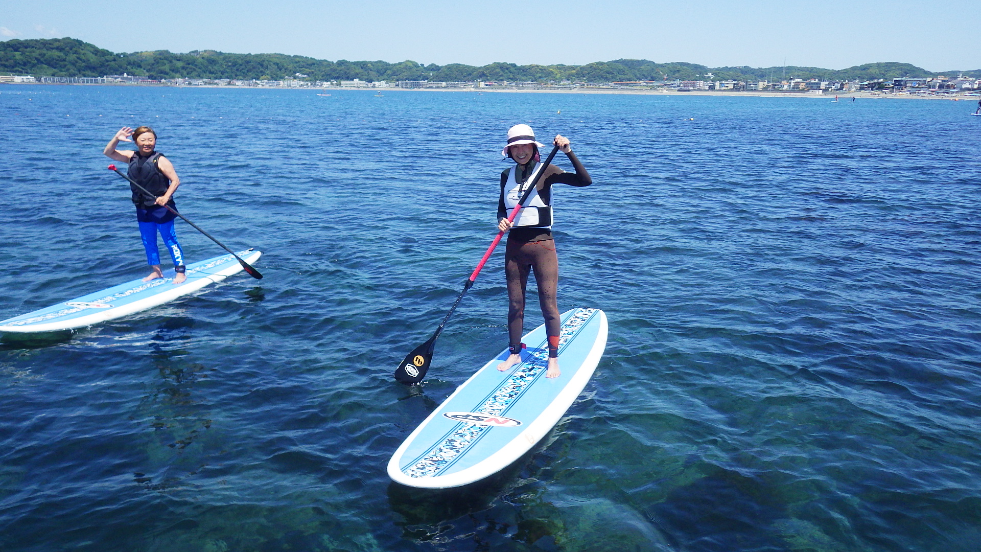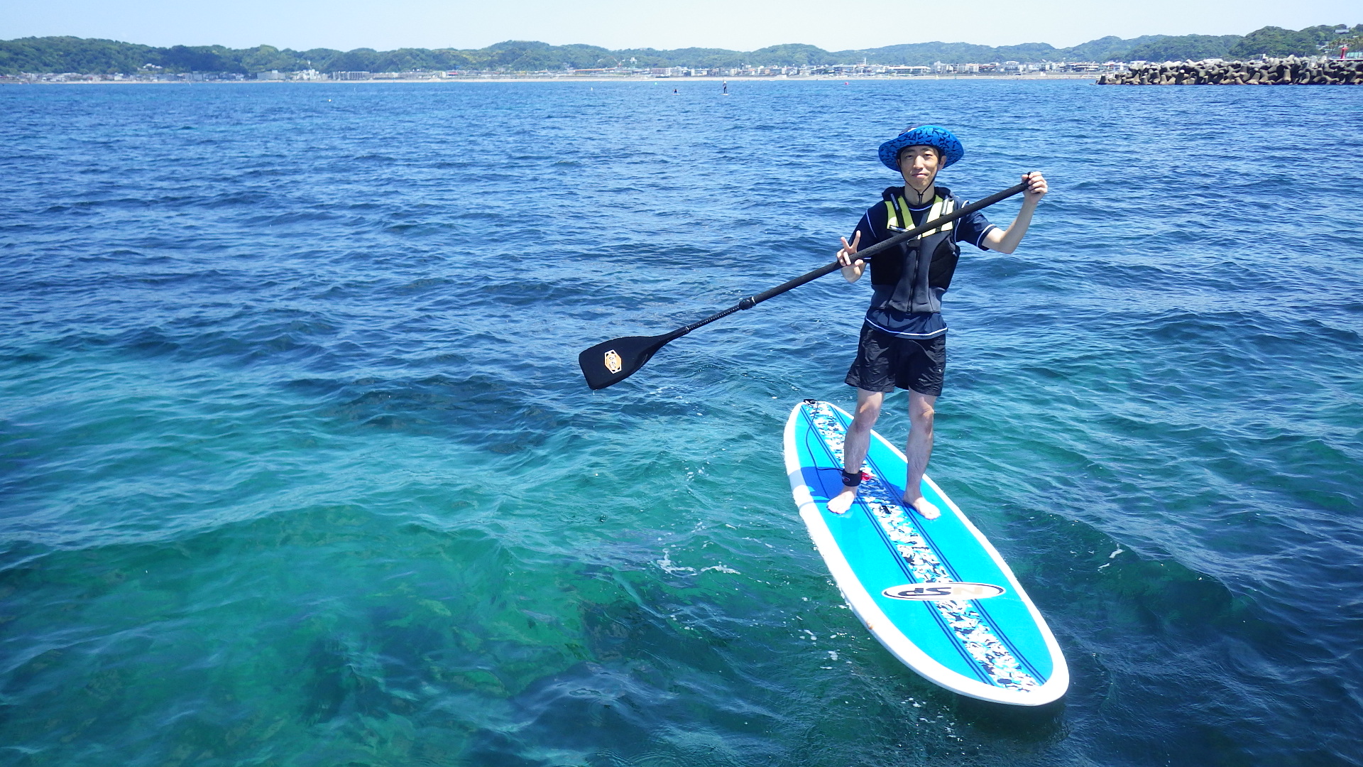 SUPは澄んだ鎌倉の海をのぞき込んでいたようですね!!N野さんは軽~いNEWブレードで漕いでいました!