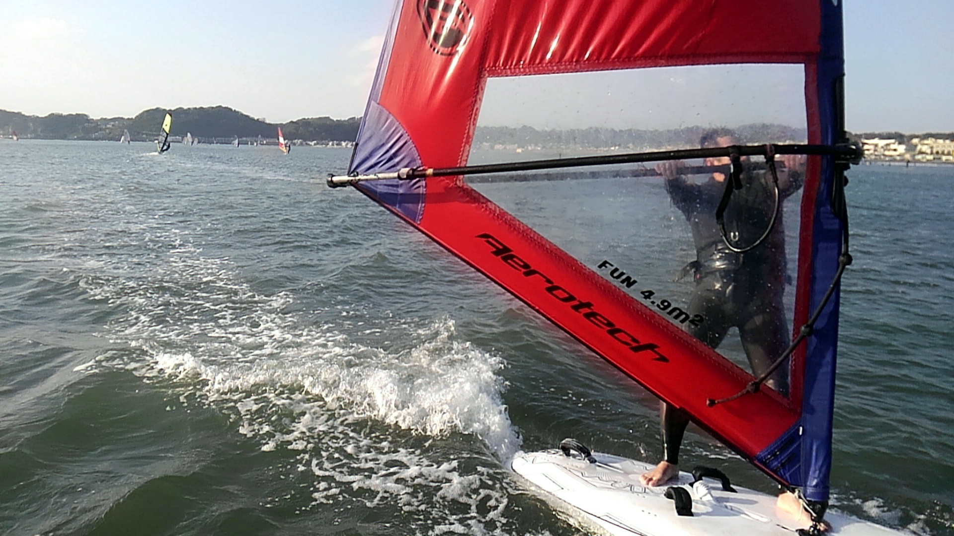 ウインドサーフィンスクール、オフショアでうねりあり!!