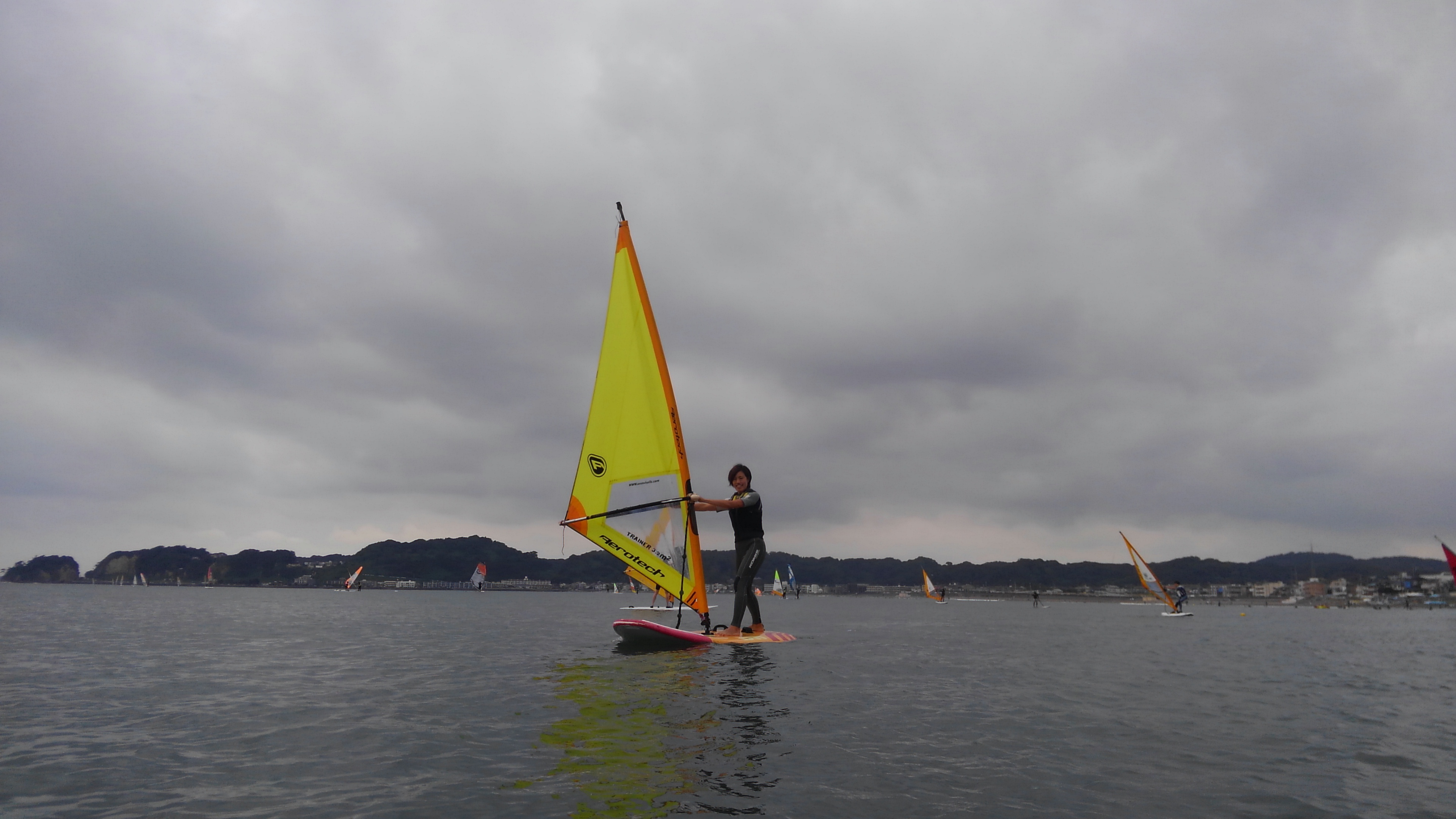 午後は風が更に弱くなりました!いつもSUPスクールに来てくれていた二人は今日はウインドサーフィンをやってみました!!