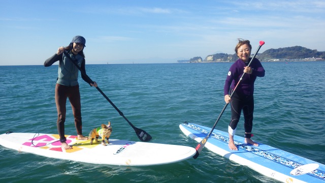 ワンちゃんも上手にボードに乗って