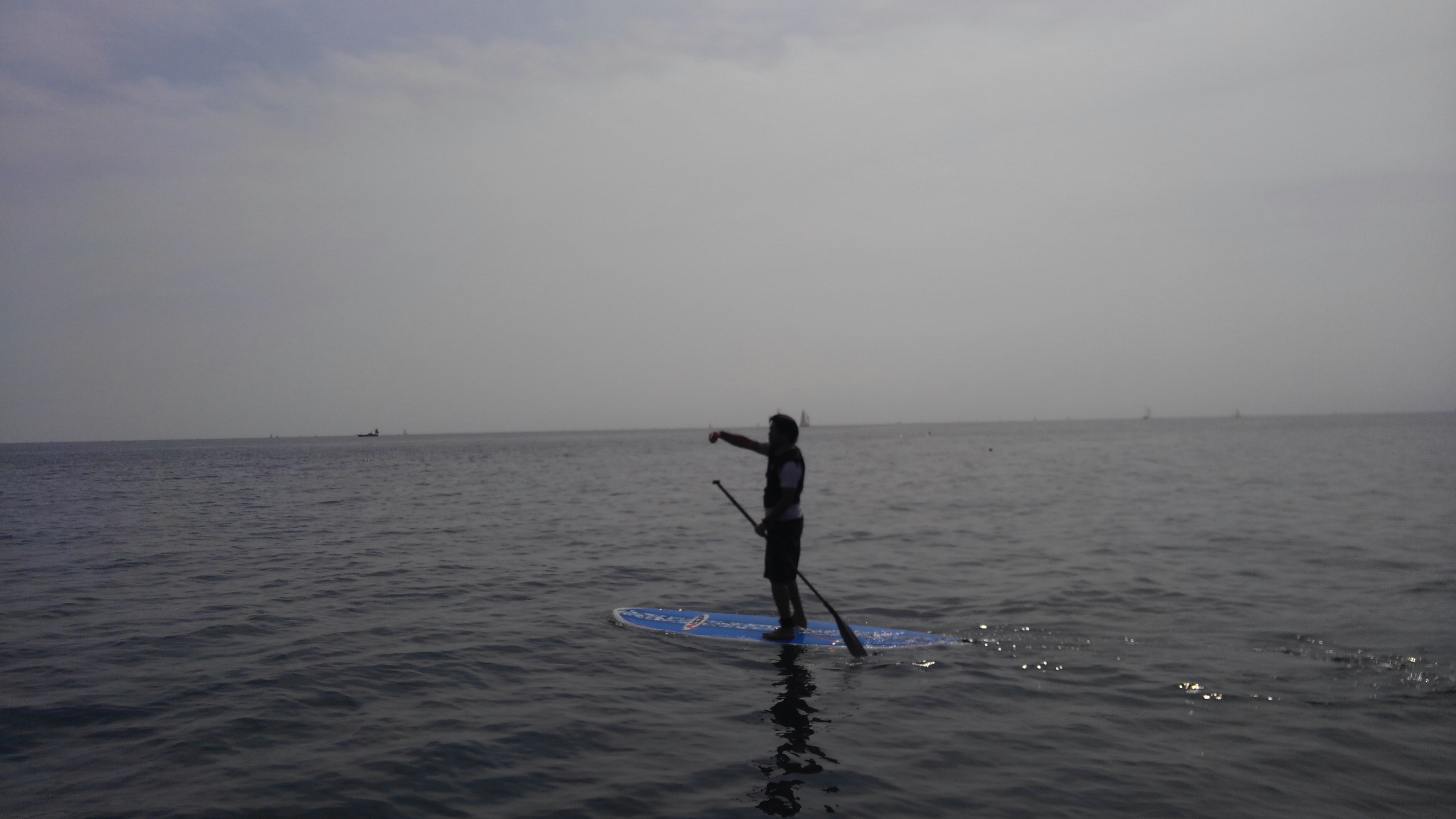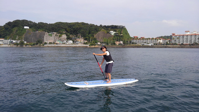 午後はSUPスクール!風が落ちて絶好のSUP日和になりました!初めてのSUPの方もいましたが隣の逗子湾まで顔を出せましたね☆
